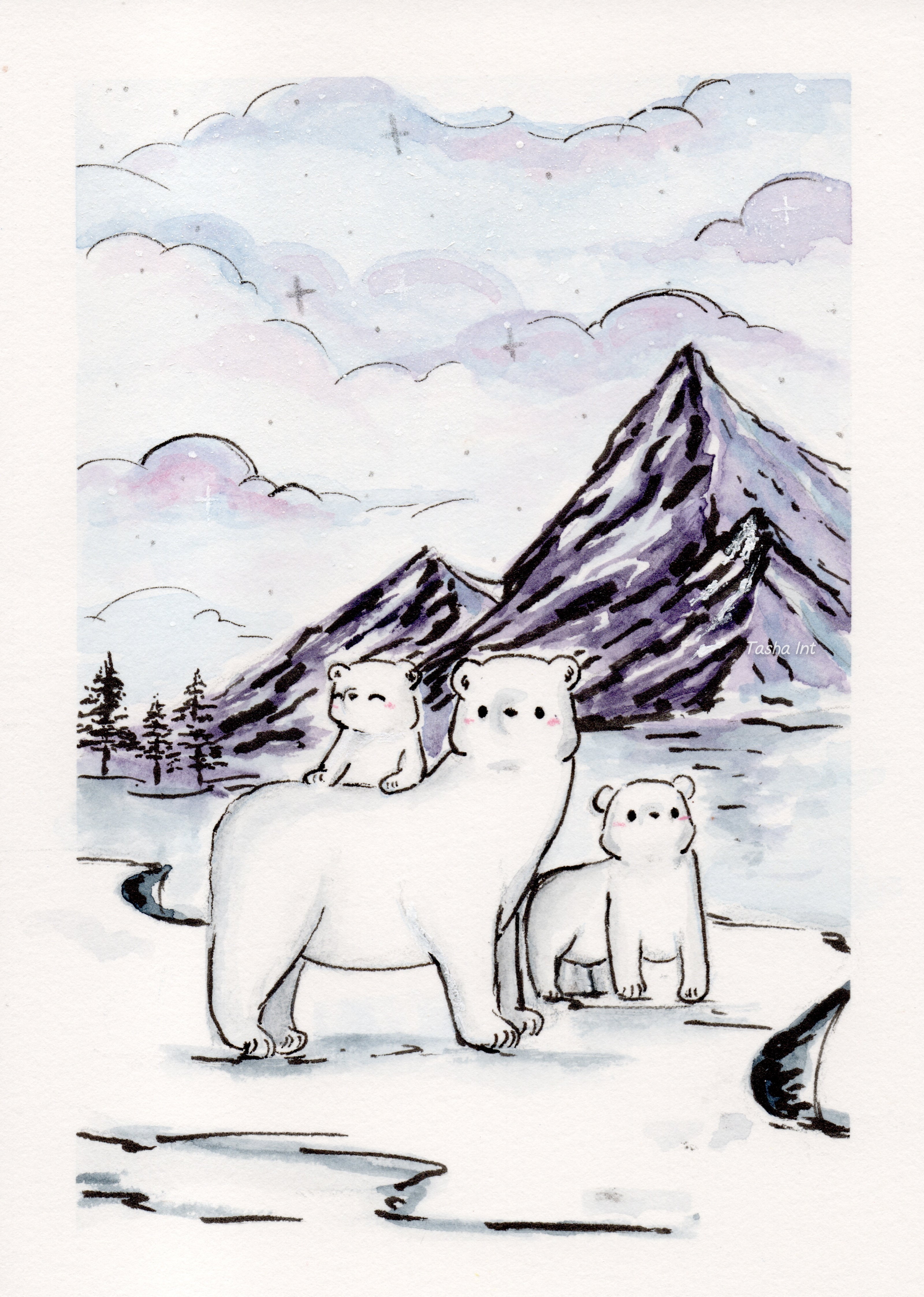 For traditional illustrations, watercolor and ink are my favorite media. I normally work on on acid-free 100% cotton watercolor paper so the originals are archival.
